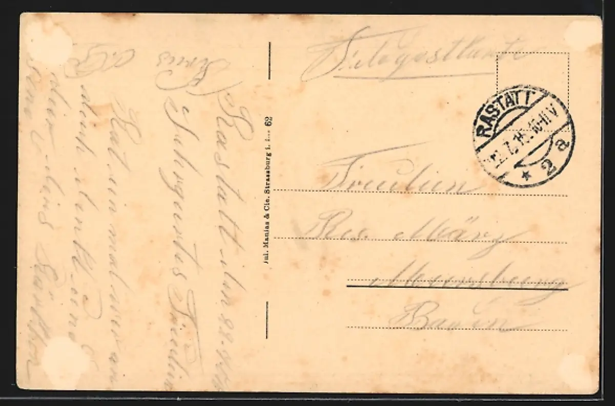 alte Ansichtskarte, gelaufen 1915, rückseitig Oberflächenschaden, guter Zustand