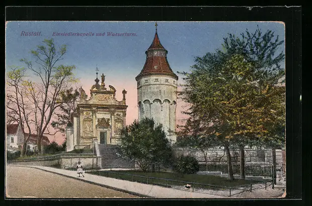 AK Rastatt, Einsiedlerkapelle und der Wasserturm