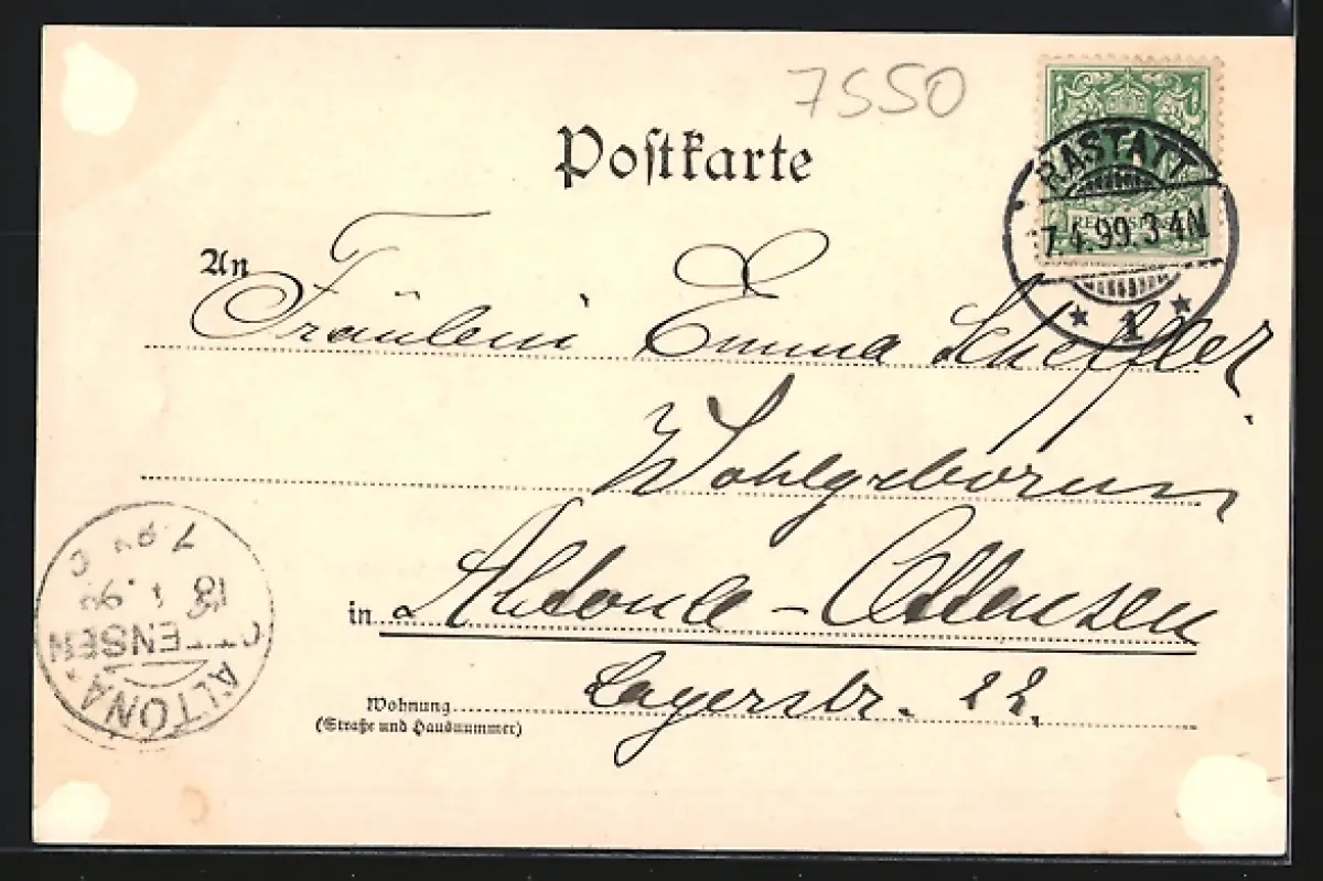 alte Ansichtskarte, gelaufen 1899, rückseitig Oberflächenschaden, Albumspuren, guter Zustand
