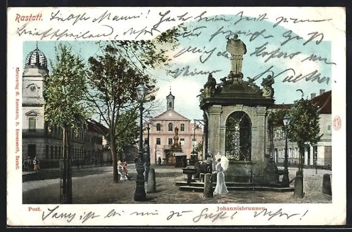AK Rastatt, Johannisbrunnen, Postamt