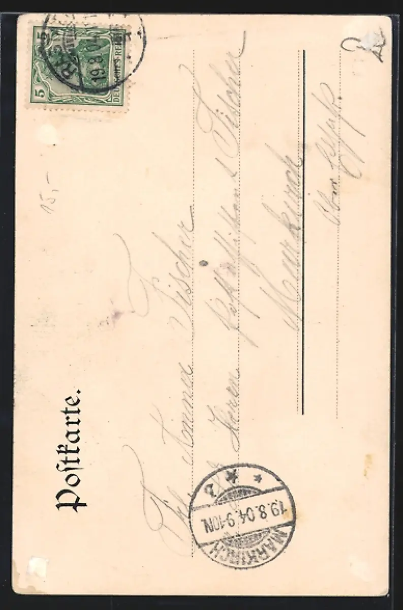gelaufen 1904, Eckknick li. oben, rückseitig Klebe- und Papierreste, rückseitig Oberflächenschaden, guter Zustand