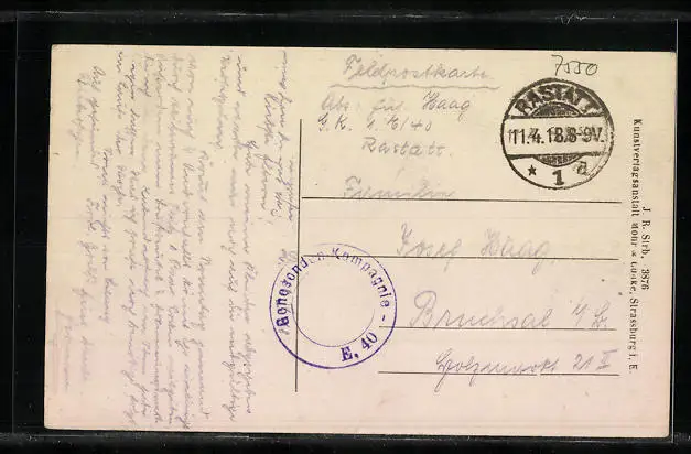 alte Ansichtskarte, gelaufen 1918 als Feldpost, Eckknick re. unten, guter Zustand