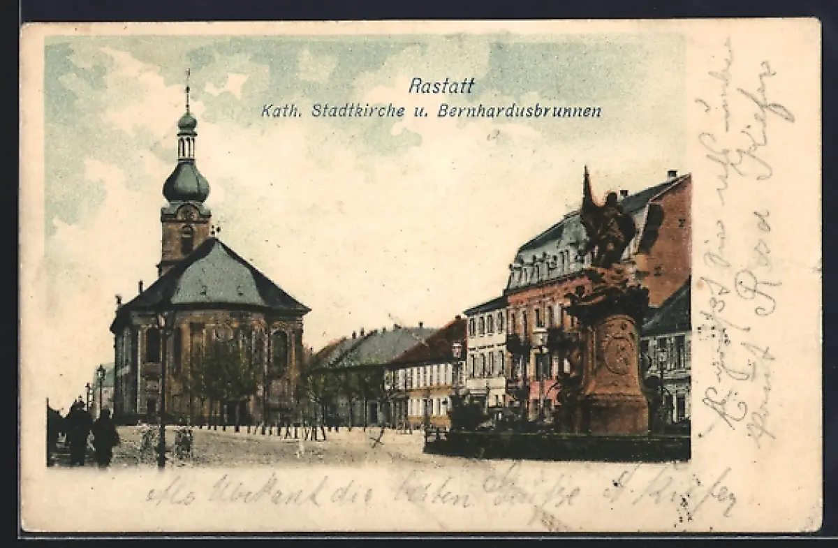 AK Rastatt, Kath. Stadtkirche, Bernhardusbrunnen