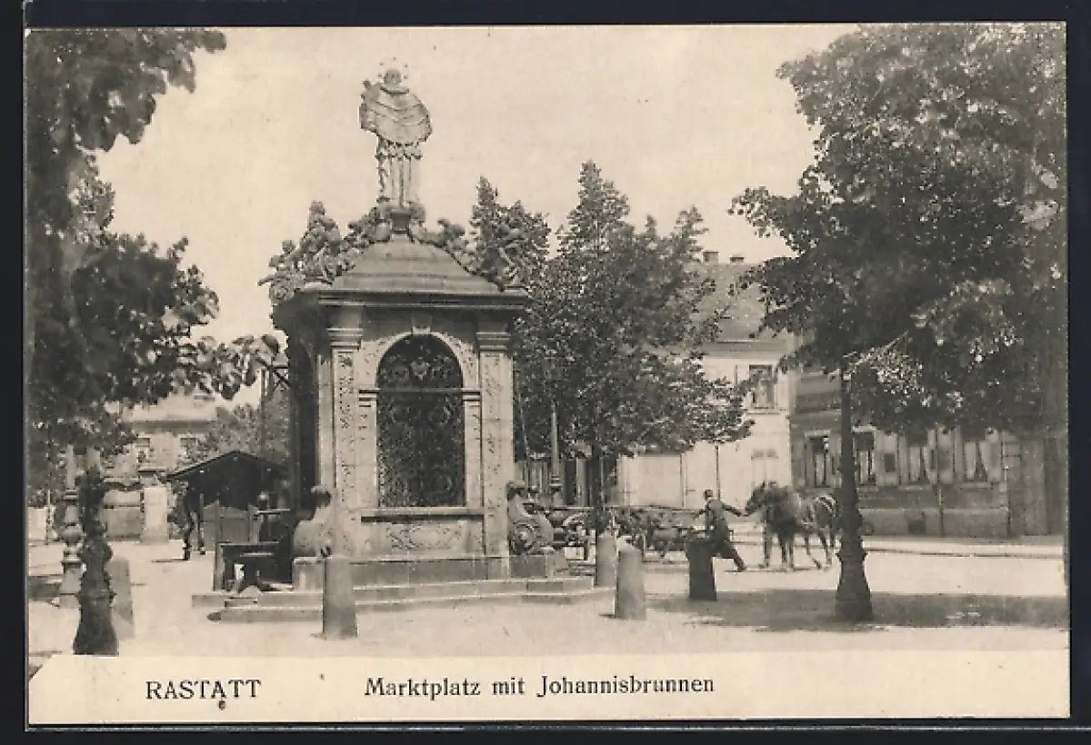 AK Rastatt, Marktplatz, Johannisbrunnen