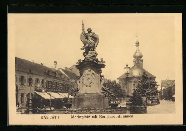 AK Rastatt, Marktplatz mit Bernhardusbrunnen