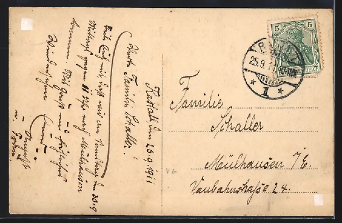 gelaufen 1911, rückseitig Klebe- und Papierreste, guter Zustand