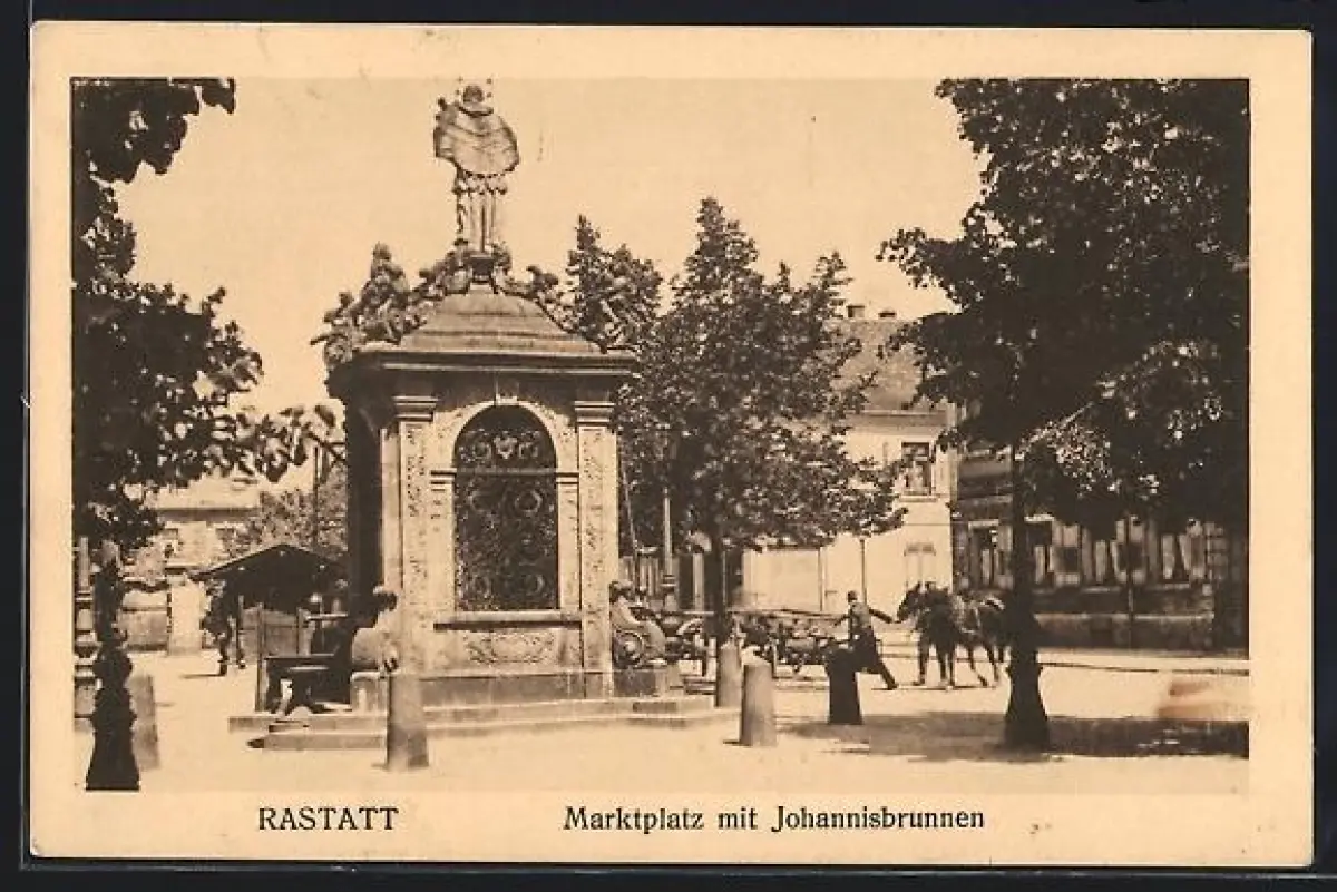 AK Rastatt, Marktplatz mit Johannisbrunnen