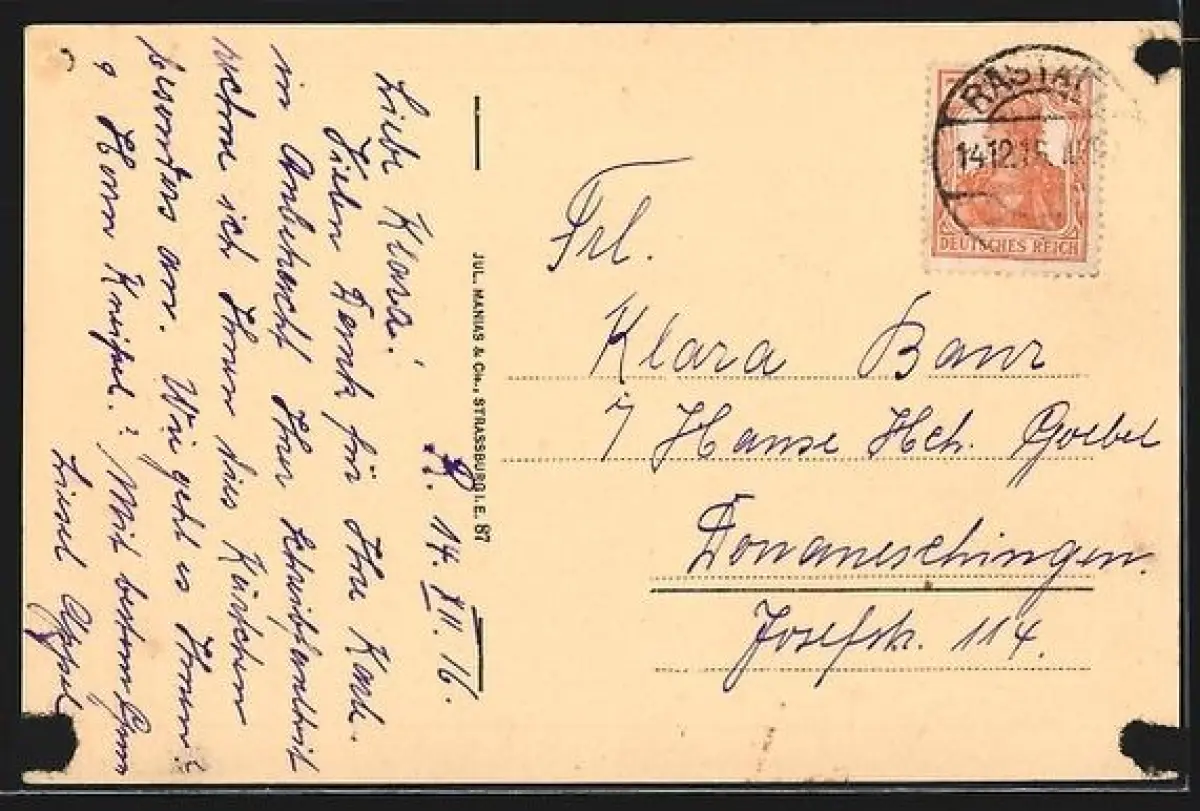 alte Ansichtskarte, gelaufen, rückseitig Klebe- und Papierreste, rückseitig Oberflächenschaden, guter Zustand