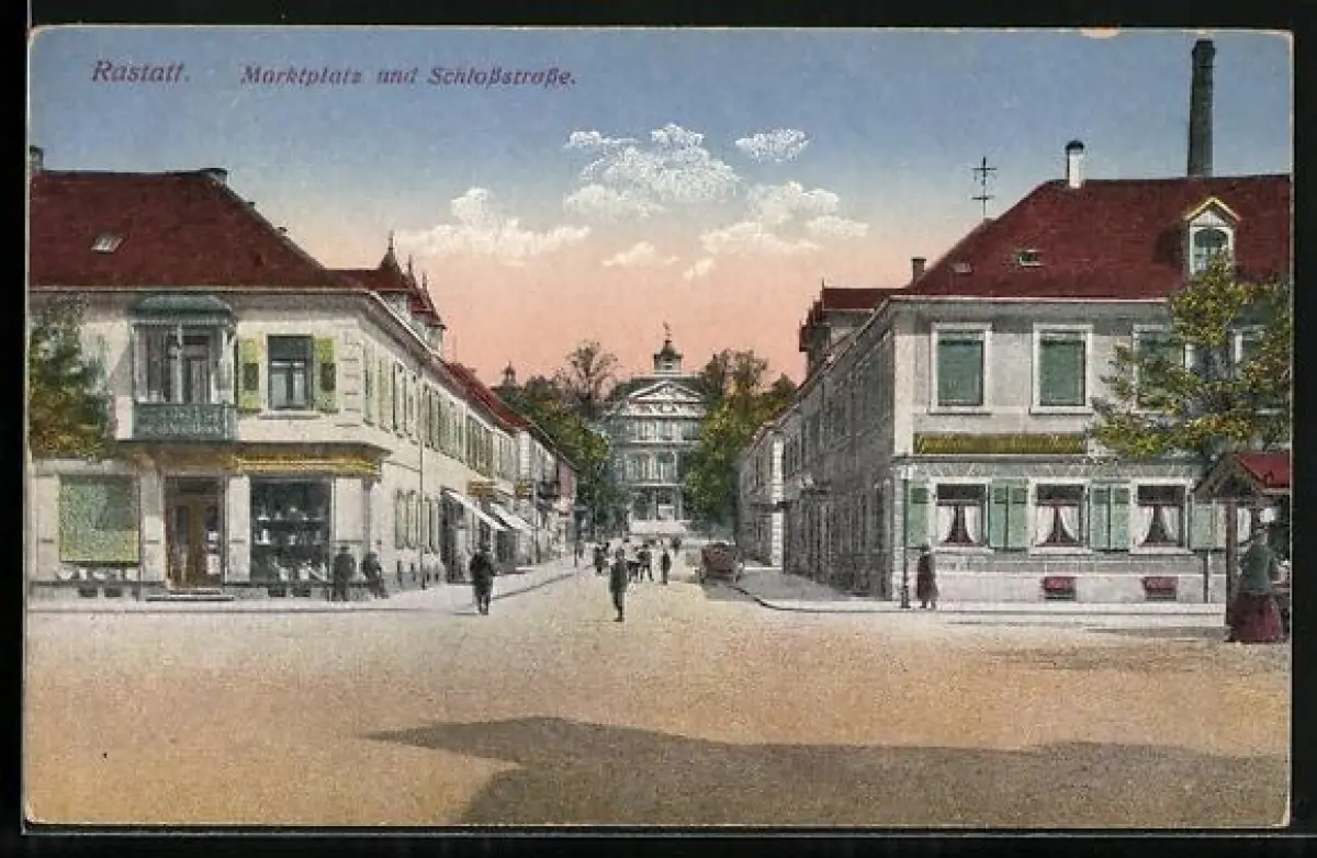 AK Rastatt, Marktplatz mit Schlossstrasse