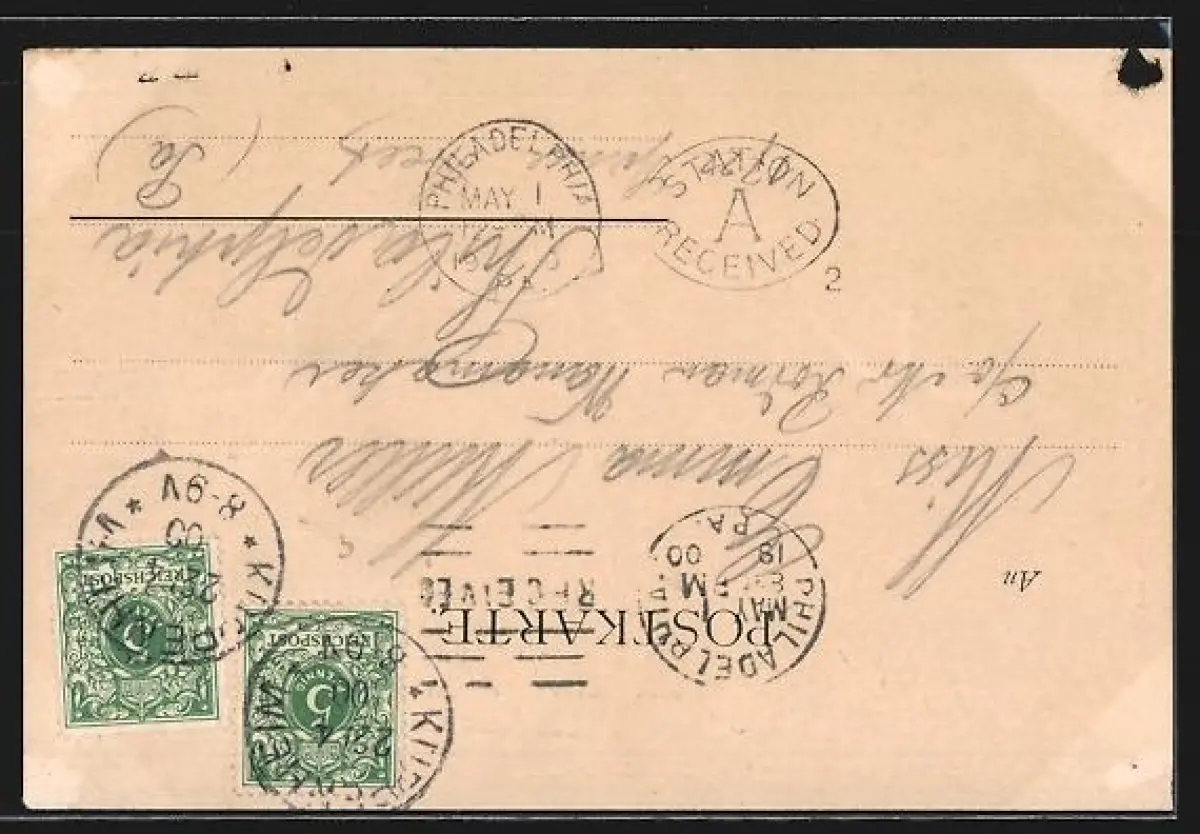 alte Ansichtskarte, gelaufen, rückseitig Klebe- und Papierreste, rückseitig Oberflächenschaden, guter Zustand