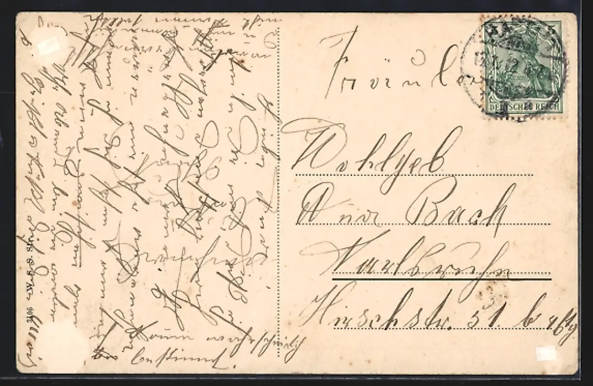 alte Ansichtskarte, gelaufen 1912, rückseitig Klebe- und Papierreste, rückseitig Oberflächenschaden, Bugspur mittig, guter Zustand