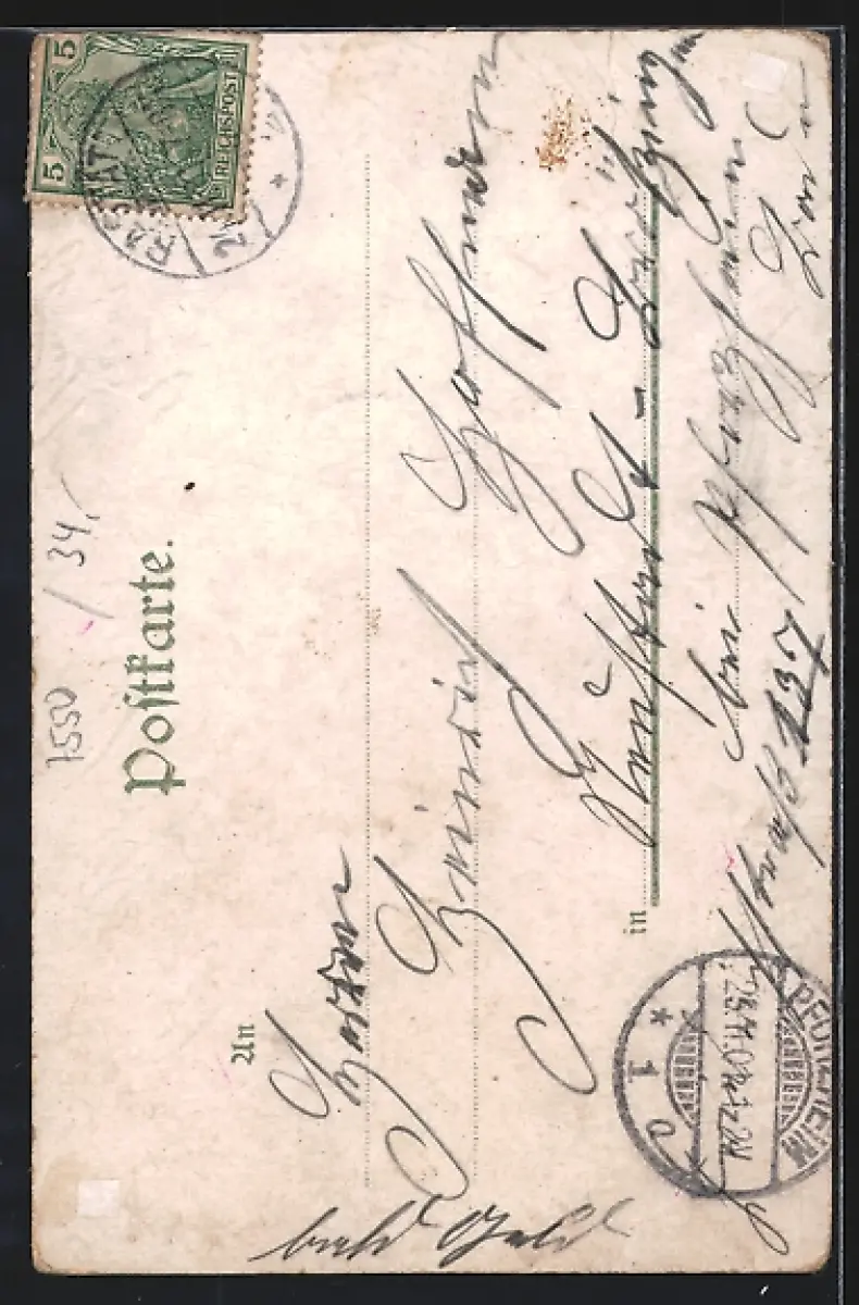 alte Ansichtskarte, gelaufen 1901, rückseitig Klebe- und Papierreste, guter Zustand