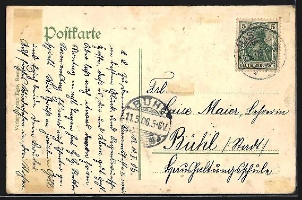 alte Ansichtskarte, gelaufen, rückseitig Klebe- und Papierreste, guter Zustand