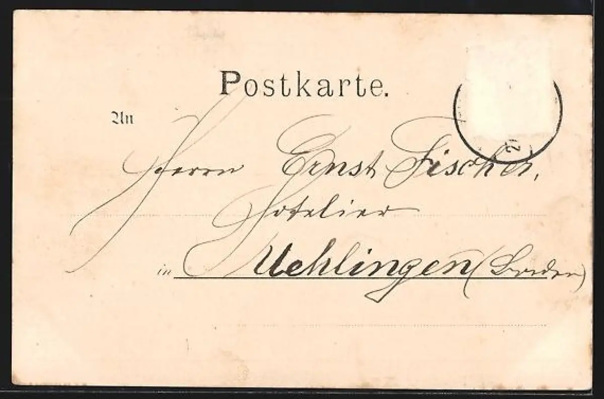 alte Ansichtskarte, gelaufen, Briefmarke entfernt, rückseitig Oberflächenschaden, guter Zustand