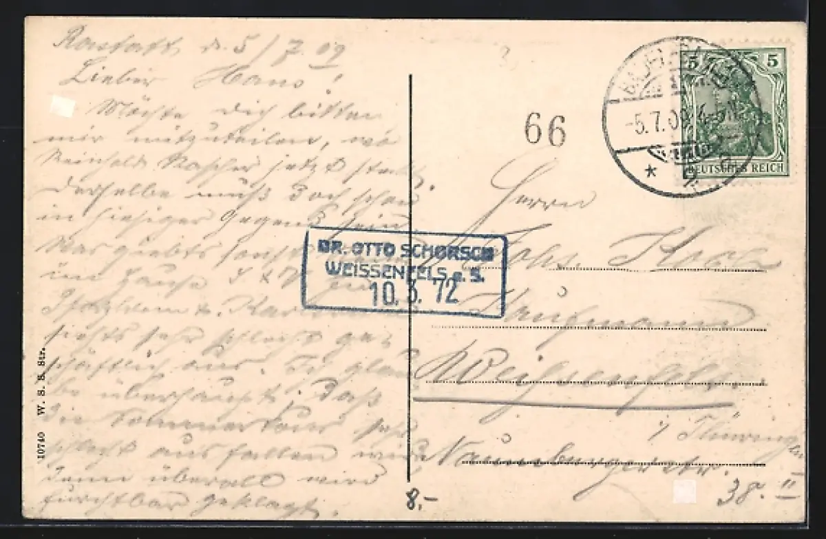 alte Ansichtskarte, gelaufen 1909, rückseitig Klebe- und Papierreste, guter Zustand