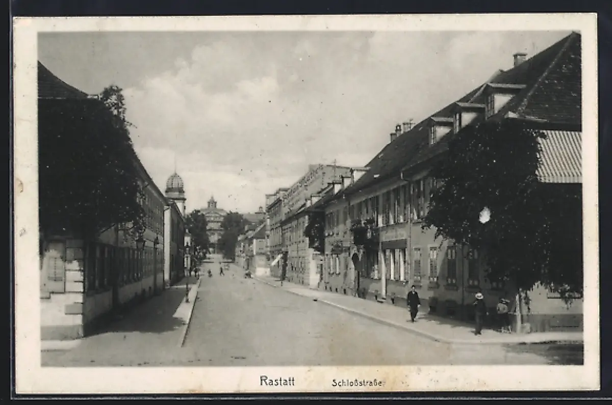 AK Rastatt, Schlossstrasse mit Passanten