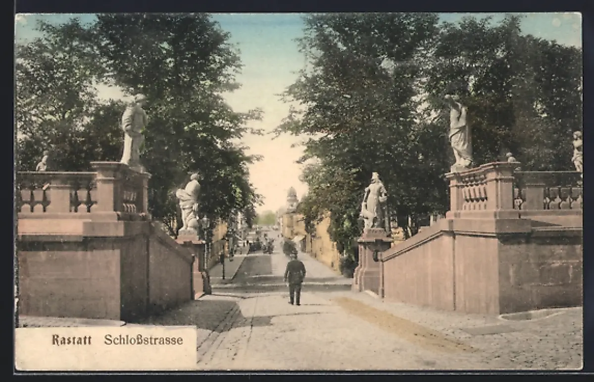 AK Rastatt, Schlossstrasse mit Passanten