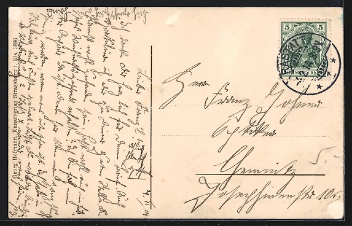 gelaufen 1914, rückseitig Oberflächenschaden, guter Zustand