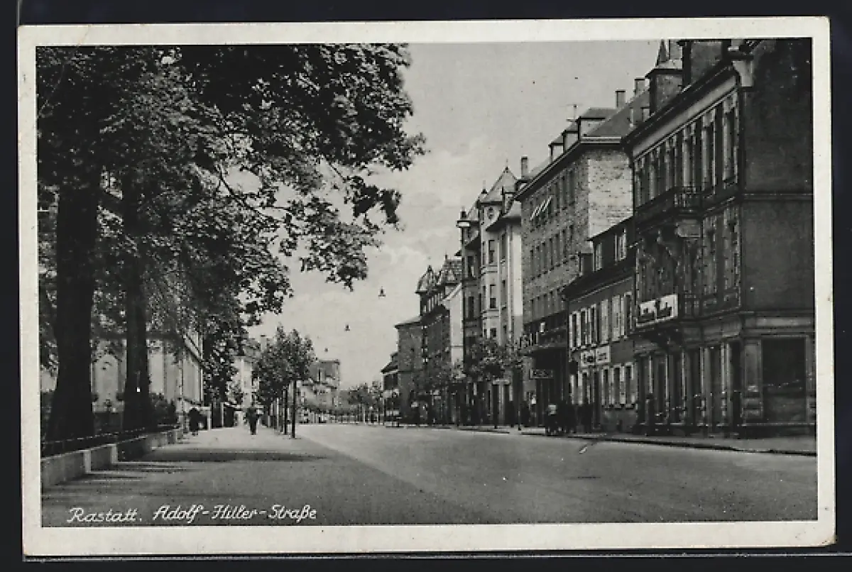 AK Rastatt, Strasse mit Geschäften
