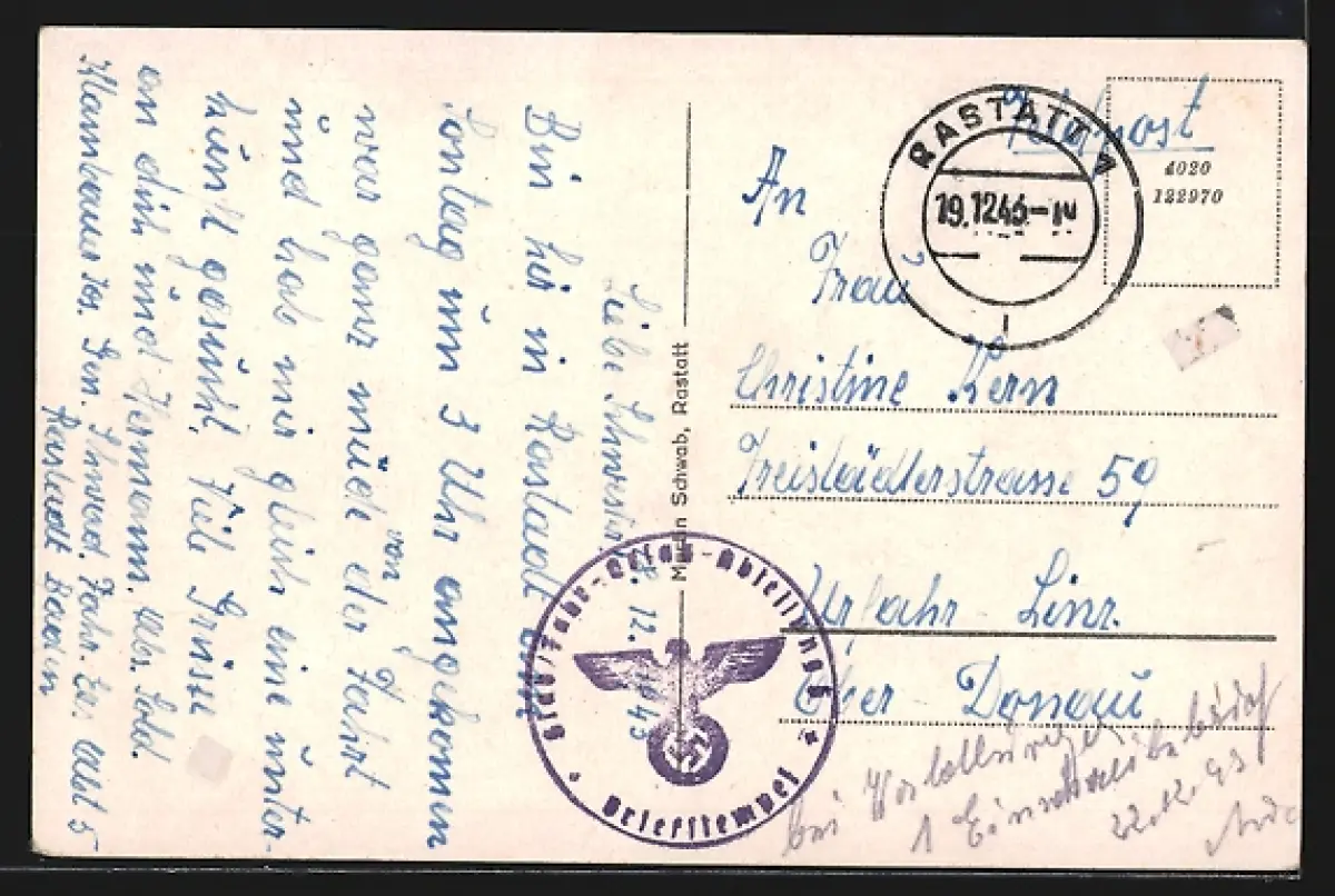 alte Ansichtskarte, gelaufen 1943, rückseitig Klebe- und Papierreste, guter Zustand