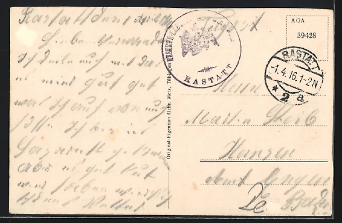 gelaufen 1916, Rand beschnitten