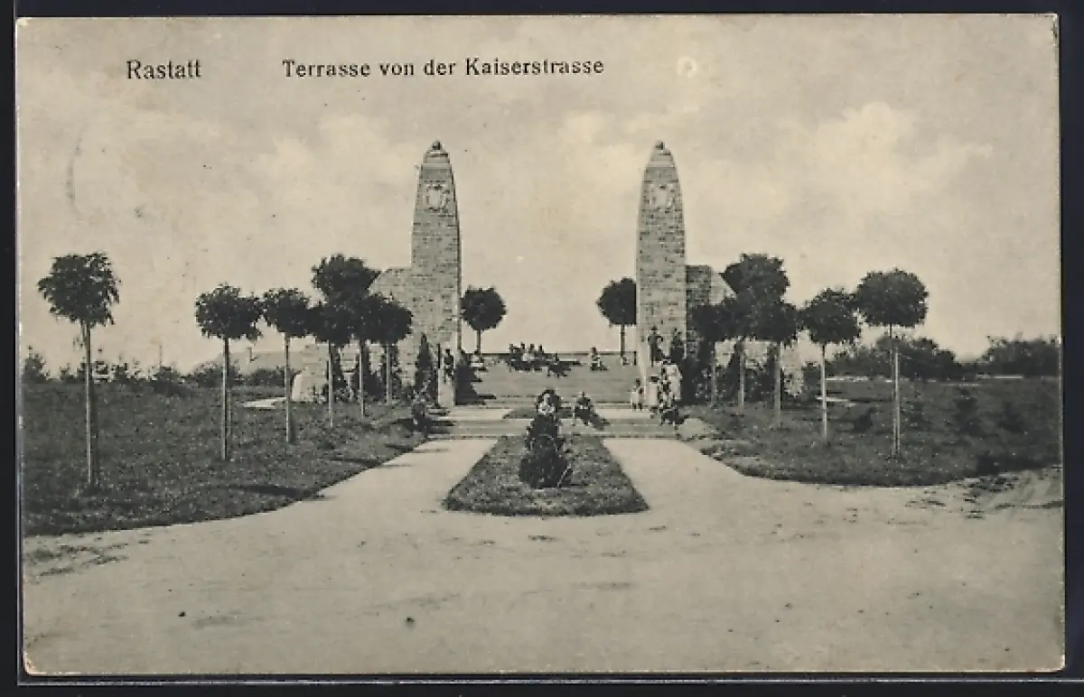 AK Rastatt, Terrasse von der Kaiserstrasse