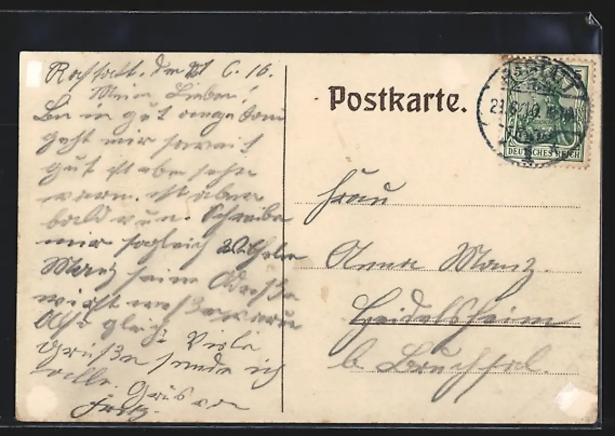 alte Ansichtskarte, gelaufen 1910, rückseitig Klebe- und Papierreste, rückseitig Oberflächenschaden, sonst guter Zustand