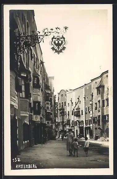 AK Rattenberg, Strassenpartie mit mehrstöckigen Wohnhäusern