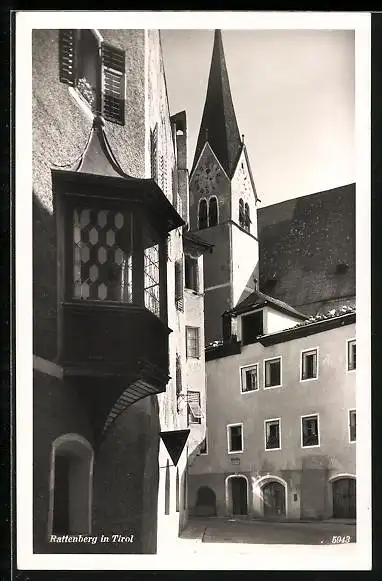 AK Rattenberg in Tirol, Strassenpartie mit Kirche
