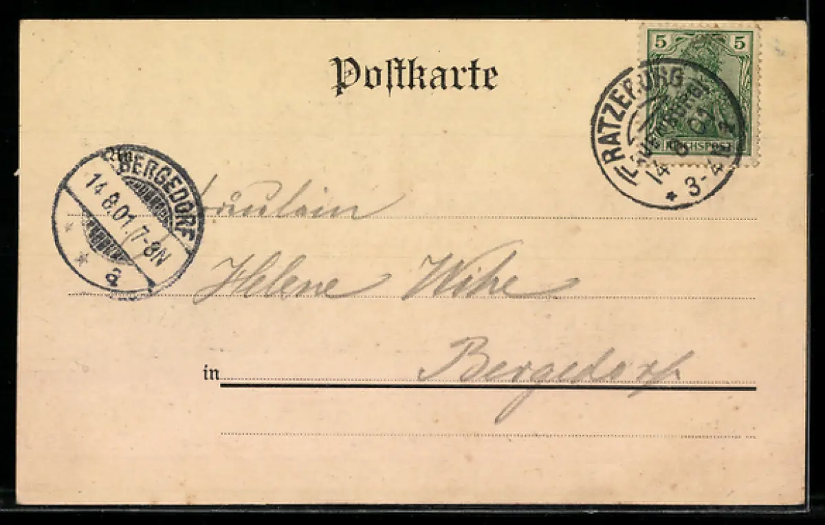 gelaufen 1901, Abriebspuren oben links u. rechts, guter Zustand