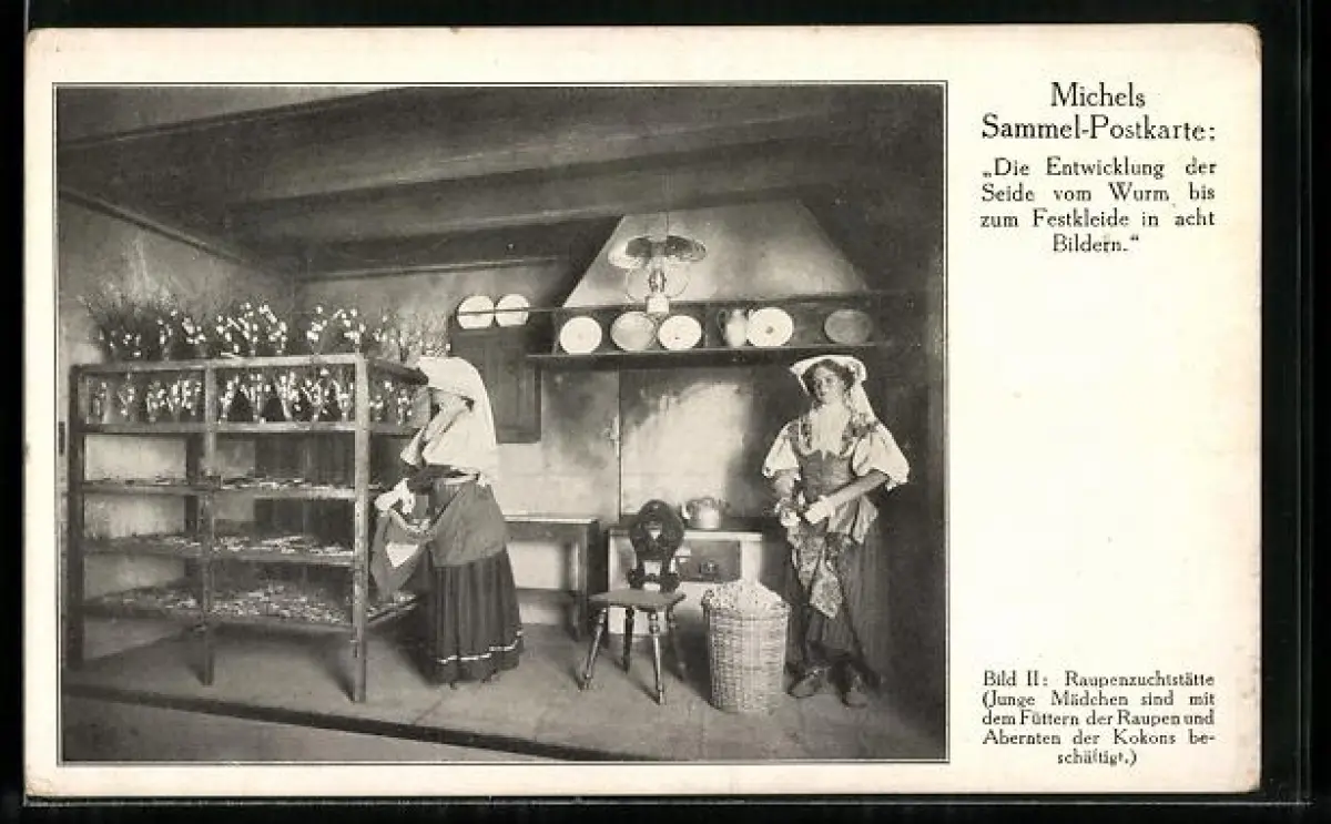 AK Raupenzuchtstätte, Füttern und Abernten der Raupen