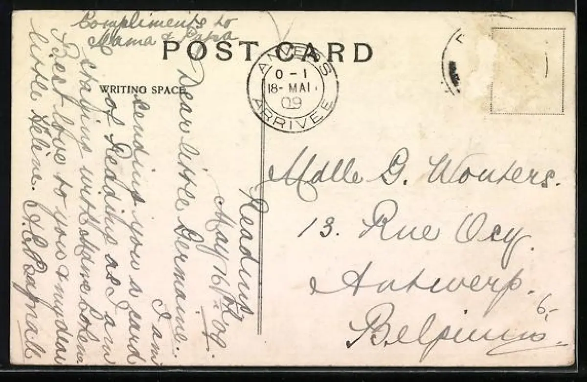 alte Ansichtskarte, gelaufen 1909, Briefmarke entfernt, rückseitig Oberflächenschaden, guter Zustand