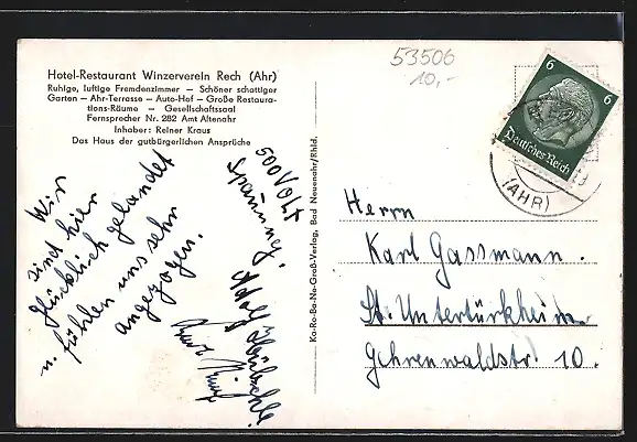 AK Rech / Ahr, Hotel-Restaurant Winzer-Verein