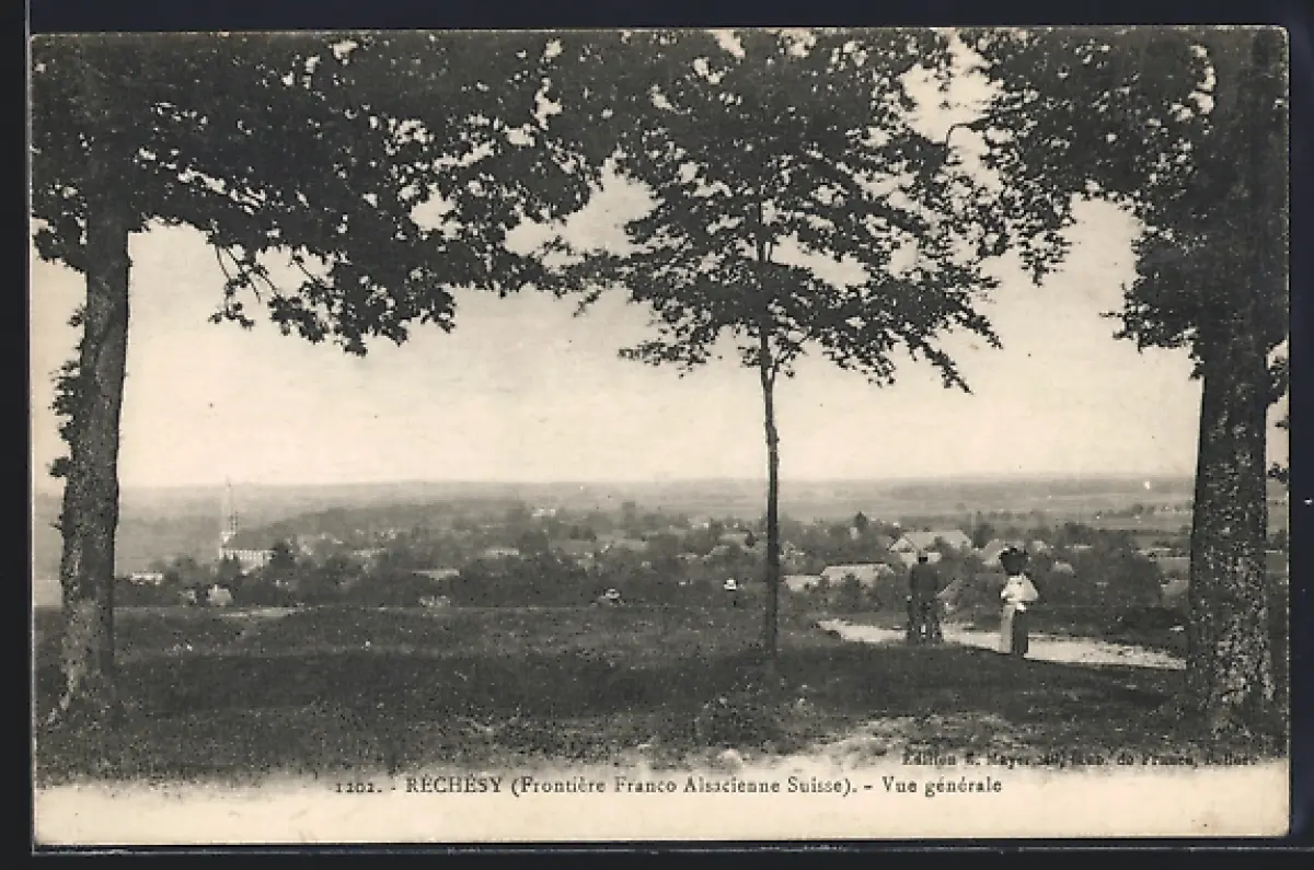 AK Réchésy, Vue générale de la frontière franco-suisse avec des arbres au premier plan