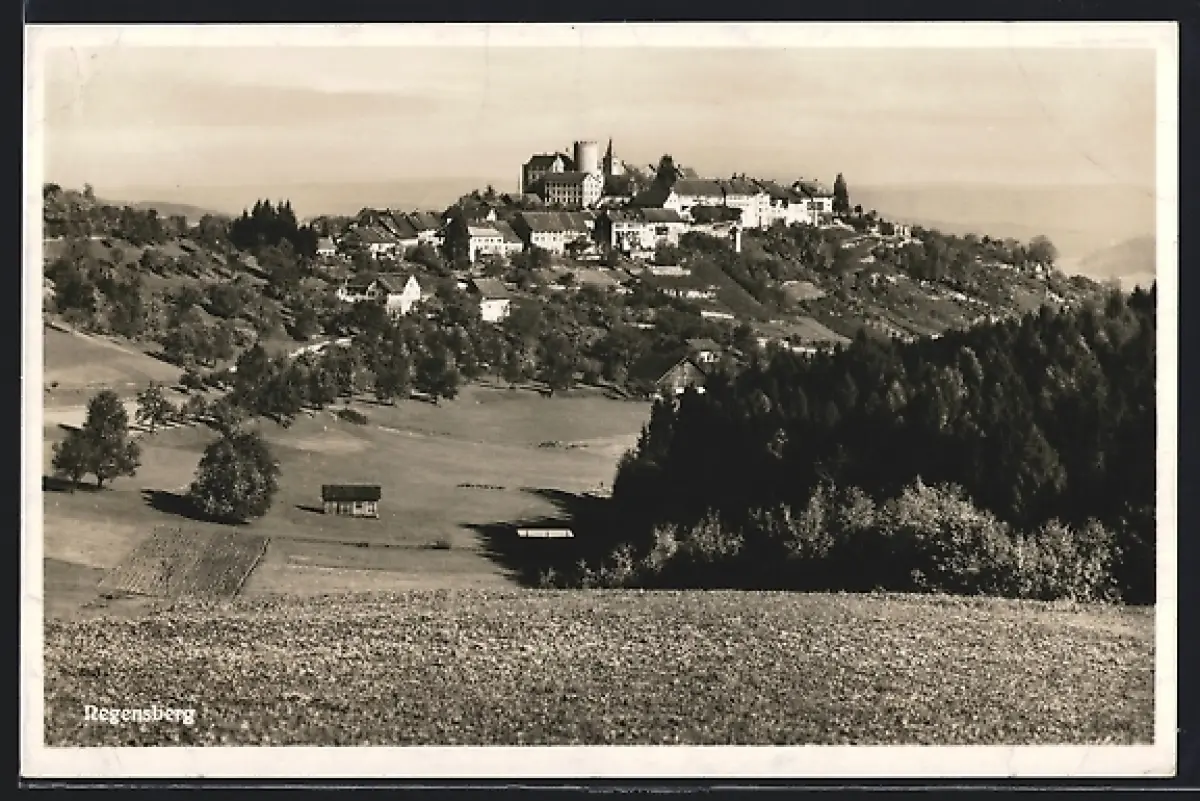 AK Regensberg, Blick von der Bergwiese auf den Ort