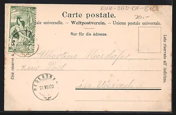 alte Ansichtskarte, gelaufen 1900, guter Zustand