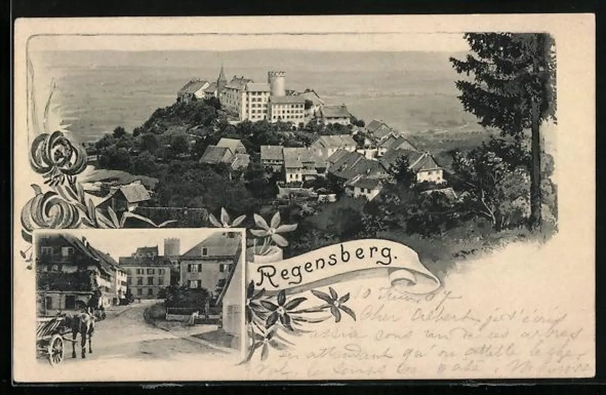 AK Regensberg, Strassenszene, Ortschaft von oben