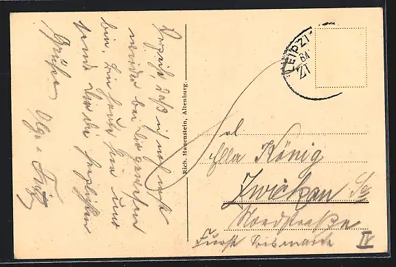 alte Ansichtskarte, gelaufen, Briefmarke entfernt, Stempelspur, guter Zustand