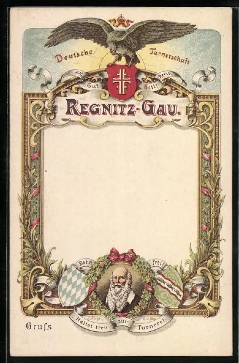 AK Regnitz., Turnvater Jahn mit Bayerischem Landeswappen
