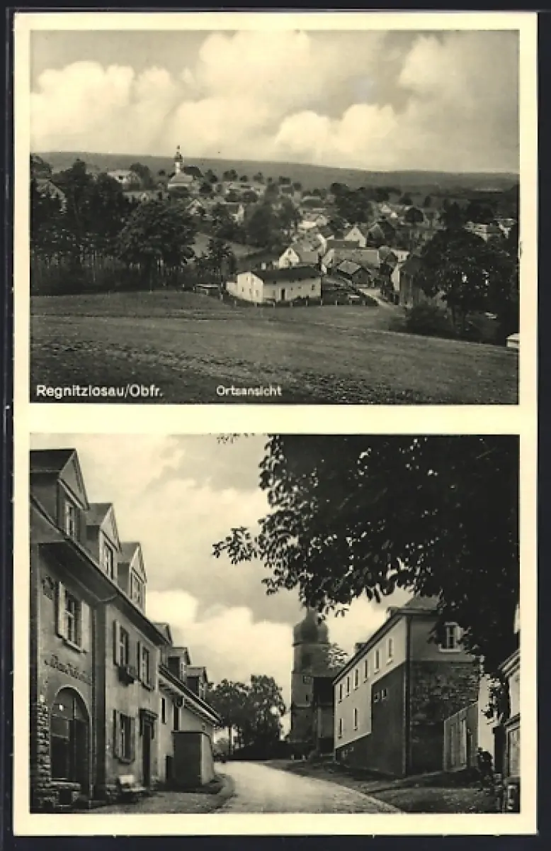 AK Regnitzlosau /Obfr., Strassenpartie mit Wohnhäusern, Ortsansicht von der Feldflur aus