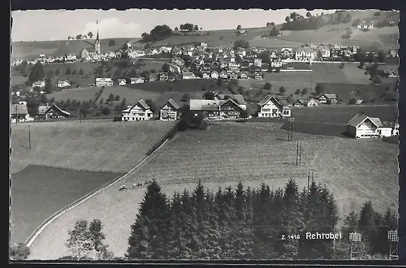 AK Rehetobel, Totalansicht mit Landstrasse aus der Vogelschau