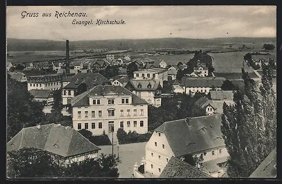 AK Reichenau, Ortsansicht mit Evangel. Kirchschule
