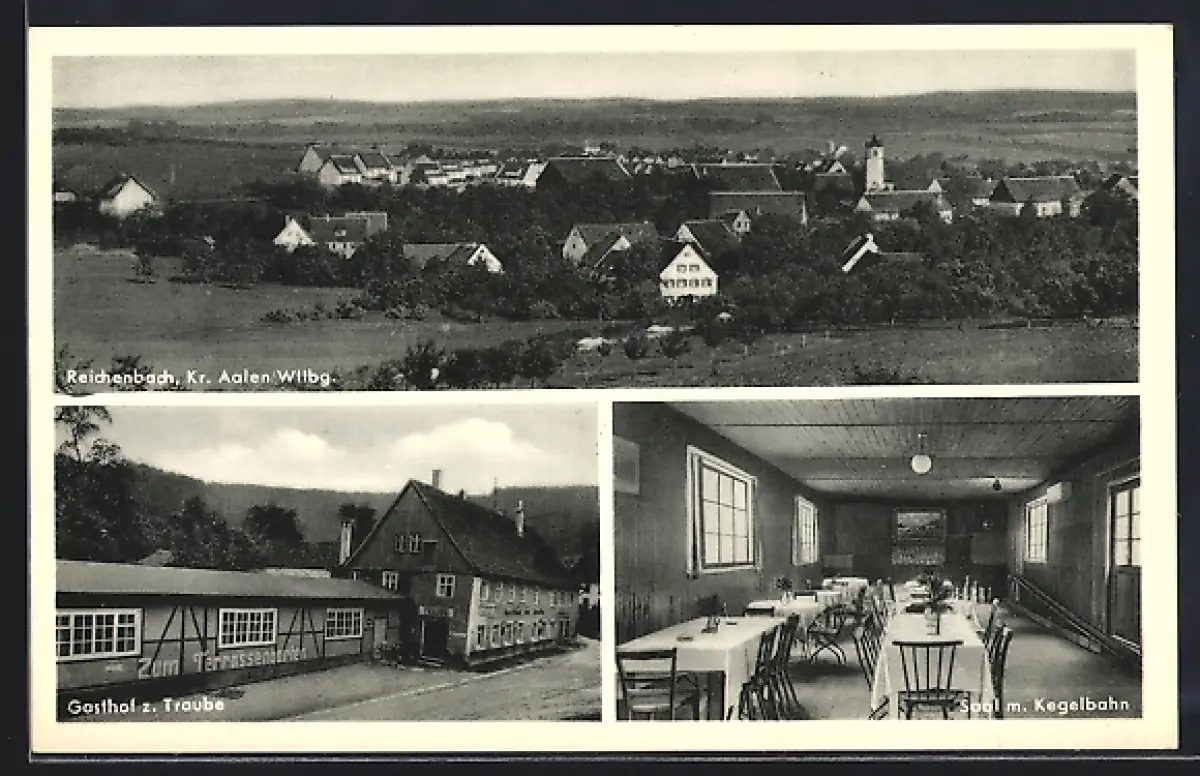 AK Reichenbach Kr. Aalen, Gasthof zur Traube, Inneres Saal mit Kegelbahn, Teilansicht