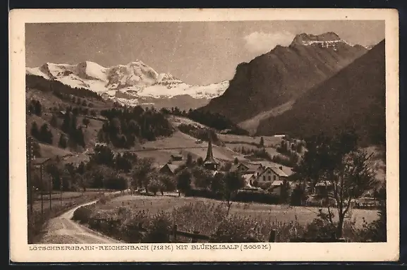 AK Reichenbach /Lötschbergbahn, Ortspartie mit Blüemlisalp