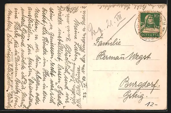 alte Ansichtskarte, gelaufen 1922, Eckknicke re., guter Zustand