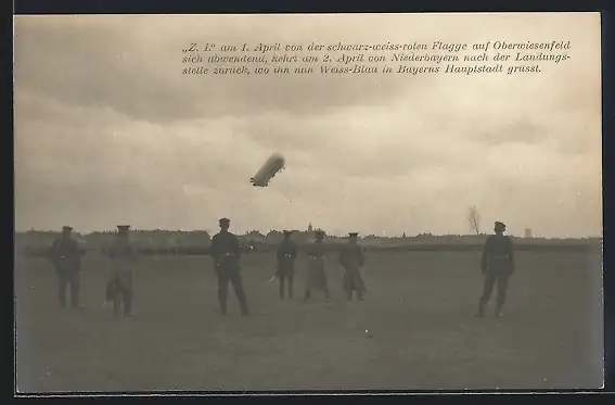 AK Reichsluftschiff Zeppelin Z 1 steuert das Oberwiesenfeld an