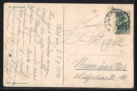 gelaufen 1914, Briefmarke entfernt, rückseitig Klebe- und Papierreste, guter Zustand