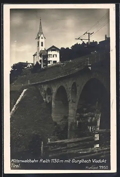 AK Reith /Tirol, Mittenwaldbahn mit Gurglbach Viadukt