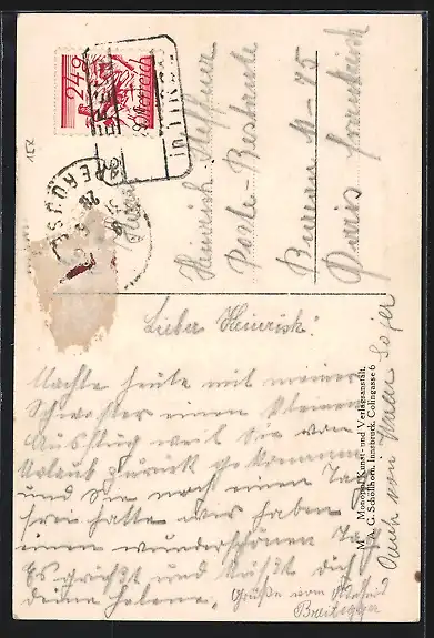 alte Ansichtskarte, gelaufen, rückseitig Oberflächenschaden, guter Zustand
