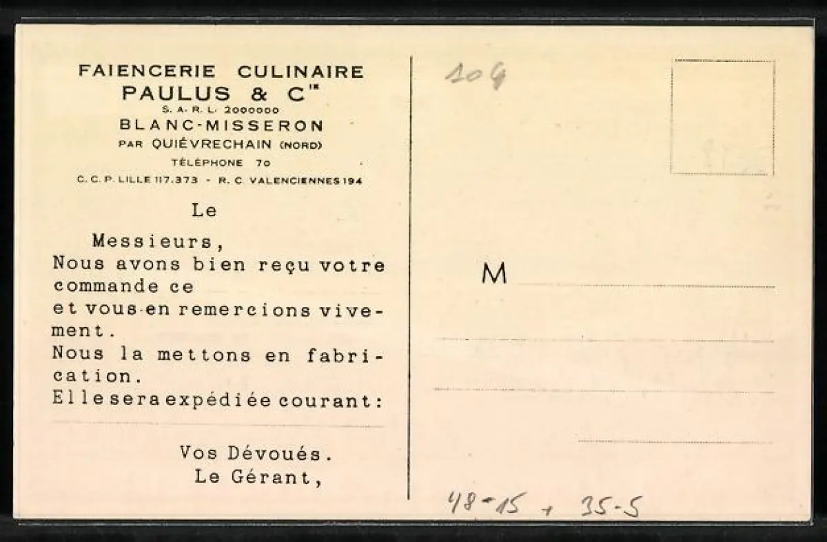 AK Reklame Kochgeschirr von Paulus et Cie Faiences a Feu Durofeu